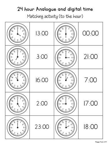 24 Hour Analogue Digital Clock Time Matching Activities by ...