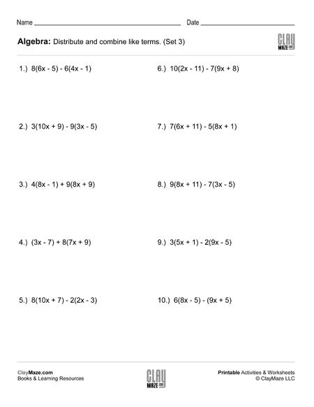 How to combine like terms: (Video Tutorial) www.mathwarehouse.com/algebra/like-terms/how-to-combine-like-terms-in-math.php. A multiplied value across terms within parentheses before combining like terms. We have sorted the free printables by concepts for easy navigation.