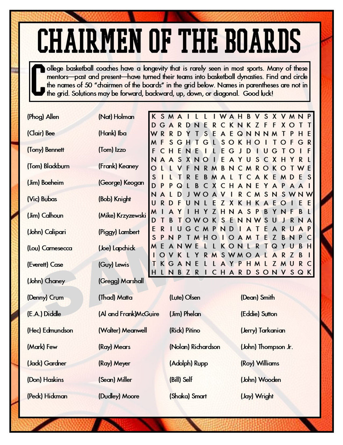 College Coaches Printable Word Search Basketball Games | Etsy