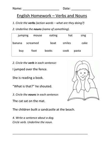 English Worksheets Nouns And Verbs. Classifying nouns: person place or thing. Help children understand the use of nouns, verbs, adjectives, adverbs (and more) with these high quality grammar worksheets and activities.