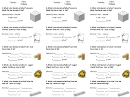 Density of solids and liquids worksheet | Teaching Resources