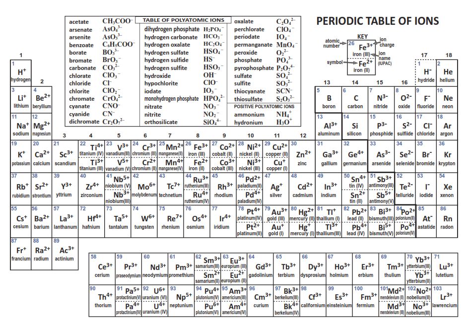 This is a collection of periodic tables that you can print and use. Write the charge that each of the following atoms will have when it has a complete set ofvalence electrons forming an ion. Ionic compounds are named by first naming the cation and then the anion.