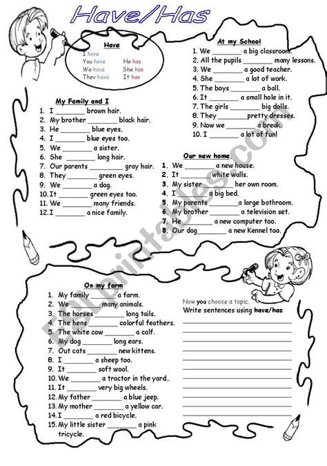 Has or Have? Fill in the Blanks Worksheet for 3rd - 4th ...