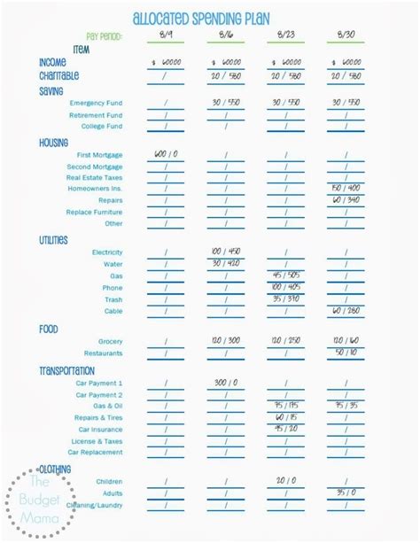Dave Ramsey Allocated Spending Plan Worksheet | Dave ...