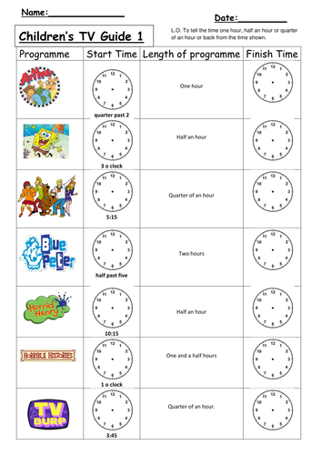 Students create their own tv guide. To get them started, it is a good idea to point out the time on digital clocks. Tes Global Ltd is registered in England (Company No.