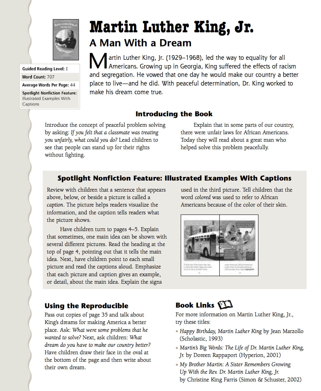 A Baptist Minister, Martin Luther King Junior became the symbol of the Civil Rights movement. Martin Luther King, Jr.: Pre- and Post-Reading Activity. Because of segregation laws, there were special schools for white children and for black children as well as special places to sit on buses and.
