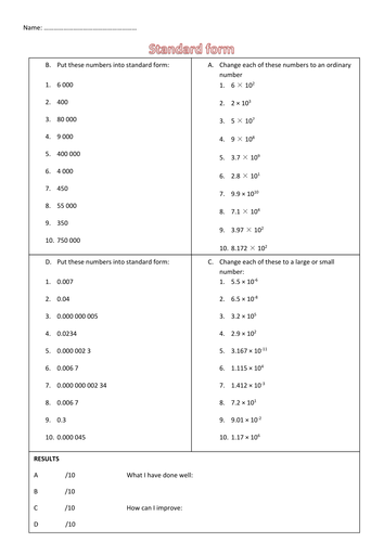 Standard form worksheet | Teaching Resources