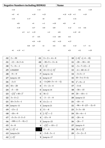 Maths worksheet: Negative numbers maze inc BIDMAS by ...