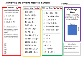 Multiplying and Dividing Negative Numbers Differentiated ...