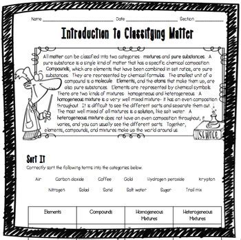 Introduction to Classifying Matter Worksheet by Adventures ...